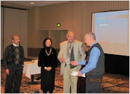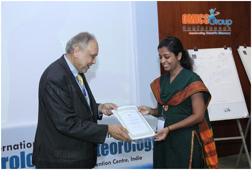 Figure 1 The author presenting an award to a lady professor in Hyderabad, India, who presented a research paper related to horticulture in OMICS Conference.