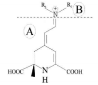 Figure 1 General formula of betalains. (A) betalanic acid is present in all betalain molecules. (B) the structure Represents betacyanine or betaxanthine depending on the substituents R1 and R2 (Horst, 2005).