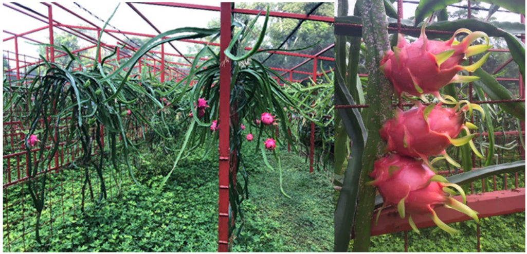 Both species of Pithaya Selenicereus undatus and Selenicereus megalanthus, were established on the 25th of May and the 26th of June, 2019. Three hundred and forty-four cuttings were planted. The seedlings used were 30cm long, previously rooted at the ranch for three months with vegetable soil and worm-compost in a protective cultivation system using horticulture shadowed cloth with 70% sunlight penetration. The substratum that was used to plant was of organic existence enriched with worm-compost and mountain microorganisms. These plants were planted in rows of high density with a distance of 50cm interspersing between the two species. The organic products that were used to enrich the plants were created at Rancho Alegre by mountain microorganisms, cattle, sheep, and horse manure, vegetable carbon, wood ash, milk, molasses, saltwater, garlic, onion, habanero chile (Capisum Chinese Habanero Group), Neem tree leaves (Azadirachtaindica), soap, rock flour, yeast, Sulfur (S), Potassium hydroxide (KOH), vegetable oil, and Calcium oxide (CaO), the schedule is ongoing cyclically. Three hundred kilograms were produced in the first year, a total of 8 groups every 19 days, with fruit up to 960 grams, where the normal weight of pitahayas in the Southeast of Mexico is between 350-450 grams. It was concluded that the use of organic products demonstrated a significant difference between production and time of fruit bearing. A favorable result is observed between the use of products and the results obtained in this production of pitahaya, that, given the first year, greatly surpasses other reference production results.