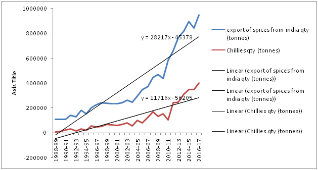 Figure 1, Figure 2 implied that the export quantity of spices and Red Chilli found to take a new upward trend from 2010-11 to 2016-17 due to the implementation of new regulations and standards fixed by the importing destinations during the year 2010.1–3