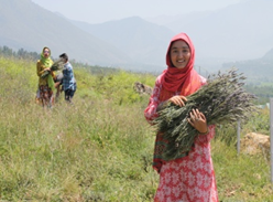 The production technology of Lavandula angustifolia (true English Lavender) from rooting of stem cuttings, standardizing the distance for plantation in field, yield of essential oil and economics of cultivation has been discussed. 92% rooting can be achieved in the semi hardwood cuttings of L. angustifolia if treated with 2000ppm IBA in the month of October. Maximum herbage yield (fresh flower) on harvesting after two years can be to the tune of 11,420kg ha-1 when planted at a spacing of 50cm X 50cm. Maximum yield of essential oil 117 kg ha-1 has been obtained from 50cm X 50cm spacing and thus showing a recovery rate of 1.02%. Actual benefits are obtained after 2nd year of plantation and production may continue up to 12-15 years. Economic analysis has shown the net results will be Rs 4.0 lakhs ha-1 year-1. Comparing the quality profile of essential oil cultivated in Kashmir with that of cultivated in Europe it has become evident that Kashmir lavender oil (linalool > 44%) is of international standards.