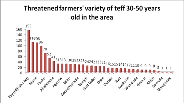 List threatened farmers' variety of teff at least 30-50 years old in the area |