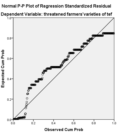 Figure 6 Regression result of factors that render for the erosion of land race of tef and dependent variable of threatened farmers' variety of teff at least 30-50 years old in the area.