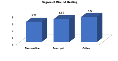 Figure 3 The degree of wound healing. The coffee group was the higher healing degree compared to other dressing.