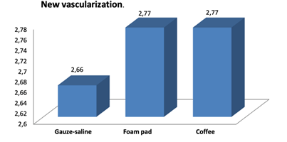 Methods: We conducted a prospective observational study in Wistar rats as an experimental randomized control trial using 27 rats of 250 grams divided into three groups. The wound size was 2cmx2cm, deep 2 mm at the back skin, and closed using gauze-saline (Group-1), foam dressing (Group-2), and coffee powder (Group-3). On the 7th day, the dressing was fixed using Liqui-PREP solution to make histologic slides to counting the epithelial cells using a microscope with 200x magnification. The wound biopsied for histologic assessment. Scoring of attached cells in wound dressing: < 10/HPF= score 3, 10-20/HPF= score 2, >20/HPF = score 1. The healing of collagen tissue density 0 to 50% = score 1, 50-75% =score 2, 75-100%=score 3. The healing of epithelialization density 0 to 50% = score 1, 50-75%=score 2, 75-100%=score 3. The healing of new vascular density, none = score 1, 1-2 new vascularization = score 2, more than 2 of new vascularization = score 3.