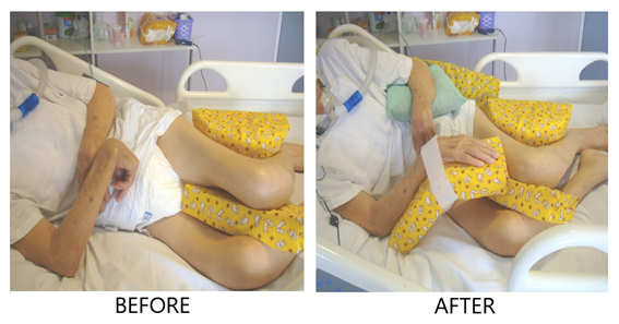 The high-density foam orthosis, following detailed criteria, can be used to promote comfort measures at end-of-life. They are prescribed, made and/or adapted by the OT for each patient, through continuous evaluation and follow-up.