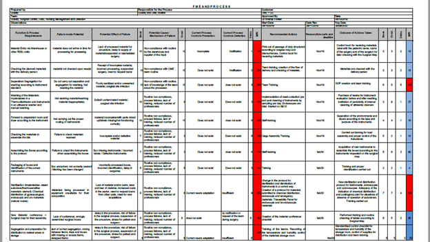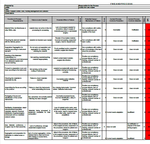 From this mapping, the weak activities, the potential failure modes, the cause and the effect of the failure were identified, unfolding into the FMEA constituting this document.