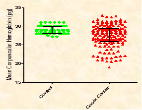 Figure 6 Median (IQR) of mean corpuscular hemoglobin concentration in controls and cervix cancer patients.