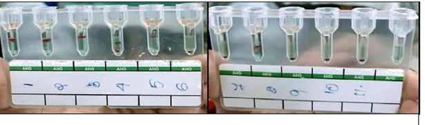 Baby was delivered at 37weeks of gestation. Baby’s blood group on cord blood sample was typed as B-Rh-(D) negative after birth. Because of postnatal hyper-bilirubinemia (20mg/dL) and anemia (9g/dL) blood samples of the baby and mother were sent to rule out Hemolytic Disease of Fetus and Newborn (HDFN) on post-natal day.