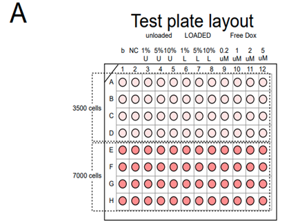 In summary, the experiment shows that DOX-LHP inhibits cell proliferation. The highest dose of DOX-LHP (10% v/v) inhibited cell proliferation equally well compared to 5µM free DOX (added to the medium). In contrast, while cells continued to expand when exposed to unloaded-LHP, there was reduced proliferation compared to the negative control (HSA medium).