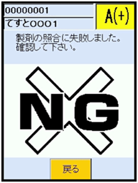 Figure 1B Screen display from a hand-held device of the EIS showing the bedside verification procedure for confirmation that the blood unit is intended for the patient. Non matching data results in a warning “NG” with an alert sound..