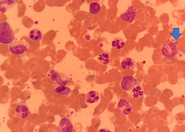 A pre-term female baby (35 weeks of gestation) was born to a multiparous mother (G3P2L2) via emergency lower segment cesarean section. The mother had a history of preterm rupture of membrane for five hours and had received two doses of antenatal steroids and pre-operative antibiotics. The baby cried immediately after birth with APGAR scores of 7,8 and 8 at 1 minute, 5 minutes and 10 minutes of life. The baby weighed 2.3 kgs and had no dysmorphic features. However, the baby developed tachypnea after 10 minutes of life and was kept on nasal prongs along with intravenous fluids and antibiotics (cefotaxime and amikacin). After three hours, respiratory distress increased, after which the baby was kept on bubble CPAP. Cardiovascular, abdominal and neurological examinations were normal. Investigations at birth revealed hyperleukocytosis (Table 1). PBS showed a shift to left with presence of the toxic granules (Figure 1) and Dohle bodies (Figure 2). There were no any abnormal cells or blasts. C-reactive protein (CRP) was elevated at 20.1mg/L. Lactate dehydrogenase was 1074U/L, uric acid was 5.2mg/dl. Serum electrolytes and metabolic panel were normal. The TORCH panel, HIV, hepatitis screening was negative. Blood culture was also negative. The diagnosis was made as culture negative sepsis. TLC increased to 132000/mm3 on the third day and clinically, the baby had persistent respiratory distress with decreased activity, following which the antibiotics were upgraded to meropenem and vancomycin. Serial monitoring showed gradual reduction of TLC after 4th day and it was found to be 18000/mm3 on the 11th day. The baby started improving clinically and was discharged after two weeks of admission. CRP was also normal at the time of discharge. On follow-up after 2 months, the baby was thriving well and CBC along with PBS were normal.