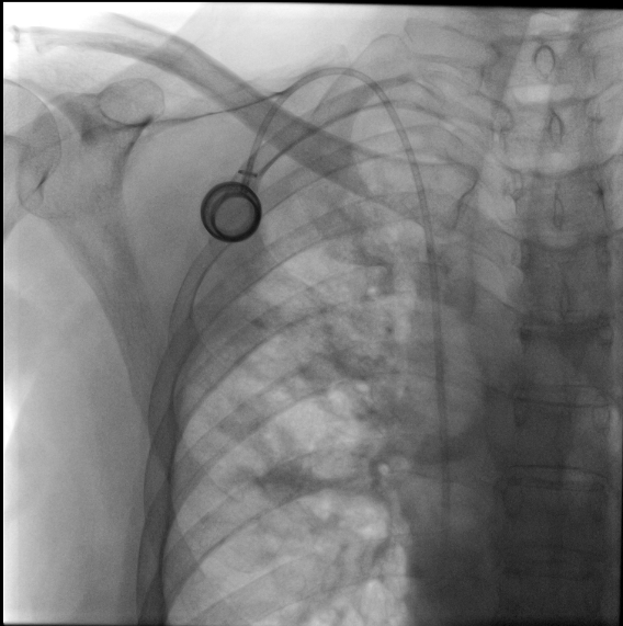 Figure 1 Chest X-ray control after implant of subcutaneous device. No radiological changes or patologic signs were present.