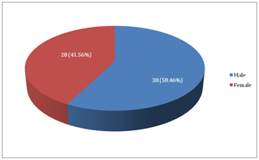 A total of 56 patients were included in study and 65 normal adults were taken as control. Table 1 shows age of patients in both hypertensive group and control group. The age of patients in hypertensive group (n= 56) was ranging between 31 to 85 years (Mean= 54.88 ± 13.57 years, SE= 1.81), while age of patients in control group (n= 65) was between 16 to 81 years (Mean= 49.44 ± 14.16 years, SE= 1.79) (Figure 1). In both groups ratio of male was slightly higher than female (Table 2). In hypertensive group (n= 56), 33 (58.92%) patients were male, while 23 (41.07%) were female (Figure 2). In control group (n= 65), 38 (58.46%) were male and 28 (41.56%) were female (Figure 3). Systolic and diastolic blood pressure was measured and evaluated in both groups (Tables 3 & 4). In control group, the systolic blood pressure measured was ranged between 106 to 138 mmHg (Mean= 122.3± 7.57 mmHg, SE= 1.17) and diastolic blood pressure was between 62 to 88 mmHg (Mean= 75.71 mmHg, SE = 0.91) (Figure 4). Both systolic and diastolic blood pressures were increased in hypertensive group as compared to control group. Systolic blood pressure in hypertensive group was between 140 to 167 mmHg (Mean= 148.21 ± 6.05 mmHg, SE= 0.8, p = 0.6) and diastolic blood pressure was between 85 to 114 mmHg (Mean= 98.39 ± 6.34 mmHg, SE= 0.84, p = 0.01) (Figure 4). Diastolic blood pressure showed statistically significant results when compared in both groups. Coagulation parameters were measured and analyzed in both groups (Tables 5 & 6). In control group, PT was ranged between 11 to 14 seconds (Mean= 12.56 ± 0.71 seconds, SE = 0.2), APTT was measured between 25 to 34 seconds (Mean= 31.49 ± 2.39 seconds, SE = 0.30) and INR was between 0.6-1 (Mean= 0.90 ± 0.07, SE = 0.03) (Figure 5). As compared to control group, the hypertensive group showed increase in their coag8ulation parameters. PT in hypertensive group was calculated between 11 to 19 seconds (Mean = 15.07 ± 1.92 seconds, SE = 0.25, p = 0.02), APTT between 30 to 46 seconds (Mean= 37.14 ± 4.06 seconds, SE = 0.54, p = 0.001) and INR was between 0.7-1.7 (Mean= 1.04, SE= 0.02, p= <0.001) (Figure 5). All coagulation parameters showed statistically significant outcome when compared in both groups. However, age and systolic blood pressure were not statistically significant (Table 7).