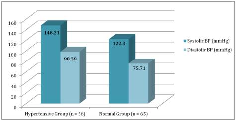 Table 4 Systolic and diastolic blood pressures in hypertensive group (n= 56)