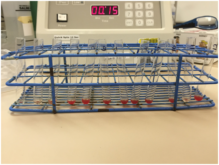 Table 2 Tubes were numbered 1 through 12 as indicated in the table above therefore the pictures below also have the tubes from left to right as 1 through 12. Tubes 1, 2, 3 and 11 clearly show strong agglutination. Tube 7 was a very weak positive and not noticeable in the picture