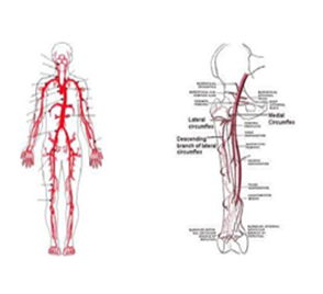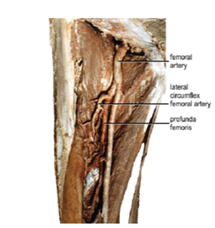 • Medial and lateral circumflex femoral arteries; the ascending, transverse and descending branches of which supply the front and sides of the thigh from the iliac crest to the knee.