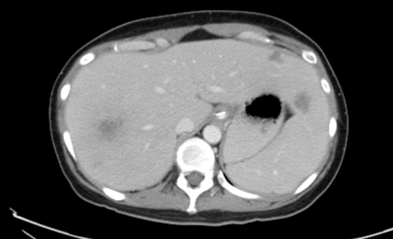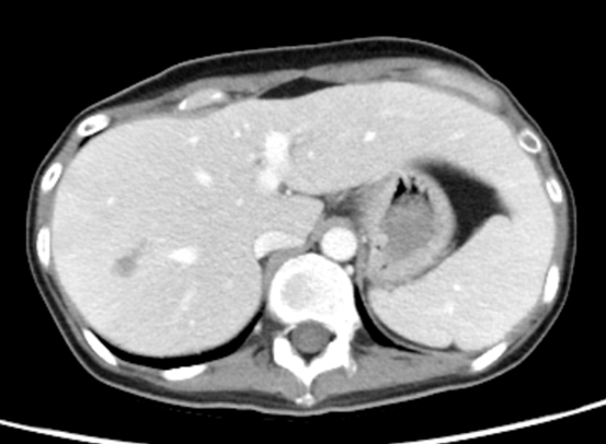 Peripheral blood mononuclear cell EBV PCR elevating from 23,709 to 68,100 IU/ug of genomic DNA occurred 6 months after first transplant. The patient initially responded to four weekly doses of rituximab 375 mg/m2, but elevated EBV PCR recurred in 2 weeks after rituximab was discontinued. There was still response after rituximab was resumed; however, there was no more response to the subsequent rituximab treatment 2 months later, and both plasma and PBMN cell EBV PCR elevated to 235,767 IU/ml and 218,411 IU/ug of genomic DNA, respectively, before second haplo-transplant. At the same time, we found there were scattered intrahepatic nodules, which proved to be EBV-related PTLD after liver biopsy performed.