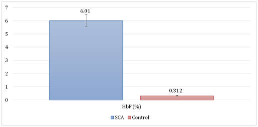 Conclusion: High HbF gives an advantage to the SCA patients where it has an ameliorating effect on the severity and the complications of the disease. The elevated HbF in Makkah city is high among adult SCA patients (75%) but the average expression level is lower than other Saudi regions. This indicates patients from Makkah City have more clinical severity and thus highly attended healthcare is required to minimize disease effect and its complication. Further molecular studies are recommended to find out genetic determinants such as single nucleotide polymorphisms of high HbF expression in SCA.