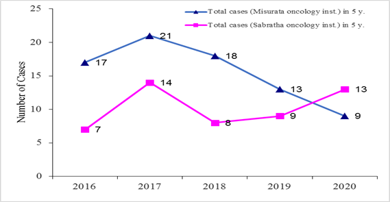 Total cases (Sabratha oncology inst.) in 5 y. |