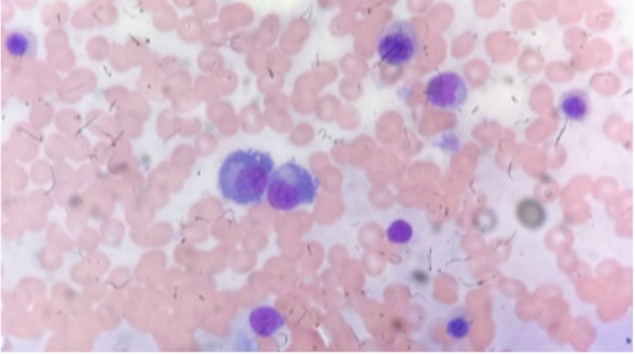 We have admitted to our hospital a 46 years old Male, from Sudan, came complaining of subjective fever for 3 days duration. His condition was associated with sore throat, arthralgia and myalgia. No history of headache, skin rashes, no weight loss or decrease in appetite, gastrointestinal symptoms or respiratory symptoms. His past medical history was negative except for one episode of malaria years back & he was treated there empirically. Family history was negative for similar condition or any history of malignancy or autoimmune disease. Examination revealed thin built, well looking middle age male not pale or jaundiced no lymph node palpable, no skin rashes throat was mildly congested. Other systemic examination was unremarkable Peripheral blood examination show that WBC: 2.440 ×109/L (normal range 4.0–11.0×109 /l)—HB: 14.4gm/dl platelets: 354,000 / ul(normal range is 150-450,000/ul). There is marked neutropenia with absolute neutrophil count of 0 / ul (virtual absence of neutrophils). Total lymphocytes are around 90% no evidence for blasts or abnormal population except for reactive lymphocytes & some LGL lymphocytes (19%). Bone marrow studies showParticulate hypocelluar bone marrow aspirate with markedly diminished myeloid precursors, (there are only 2-3% promyelocytes seen with virtual absence of any late myeloid precursors and neutrophils. Erythropoiesis constitutes 45% of the total hematopoiesis and basically normoblastic in maturation. Megakaryocytes are present & normal in morphology Mature lymphocytes and plasma cells constitutes 50% and 2% respectively (there is around 11% large granular lymphocytes with abundant cytoplasm & fine azurophilic granules out of total lymphocytes). There is around 2% blast like or hematogones in addition to few scattered histiocytes with hemophagocytic activity & rare mast cell.