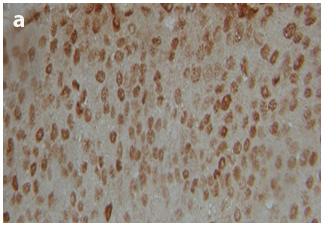 Anti-estrogen receptor (ER) incubated for 2 hours at room temperature (RT). Sections were then rinsed in three changes of PBS, and the antibody binding was detected by incubation for 10 minutes with ready to use biotinylated secondary antibody. The sections were then rinsed with PBS. After that, sections were incubated for 10 minutes with streptavidin-horseradish peroxidase at RT. Finally, the sections were rinsed in three changes of PBS, followed by developing brown color with the 3,3 diaminobenzidine tetrahydrochloride (DAB) chromogen substrate complex for 3 to 5 minutes. Counterstaining with Mayer's hematoxylin stain for 2 minutes, blued in tap water for 2 minutes and dehydrated in ascending grades of ethanol, cleared in xylene and mounted with DPX. For each run of staining, and to ensure proper immunostaining, a positive and negative control sections were also prepared. The positive control slides were prepared from breast carcinoma known to be positive for the ER. The negative control slides were prepared from the same positive control tissue block, but incubated with PBS instead of the primary antibody. Each entire section was evaluated by light microscopy and ER staining was scored using the system of Allred et al. 18 of the semi-quantitative histochemical score.18