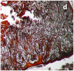 1. Van Gieson for collagen fibers (red color). ×10.