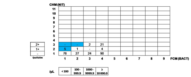 Moreover, test strip results often different from sediment findings, creating confusion among clinicians when interpreting the urinalysis results. Discrepancies between blood (BLD) & red blood cell (RBC), leukocyte esterase (LEU) & white blood cell (WBC), nitrite (NIT) & bacteria (BACT), and protein (PRO) & cast (CAST) parameters are the most frequent observation owing to different limitations of urine test strip and microscopic examination.8 As urinalysis being one of the most commonly carried out routine examination in clinical laboratories, individual evaluation for each discrepant results will not only require a substantial time, but also require a significant number of laboratory technicians. This can definitely cause problems in laboratories with limited technicians.