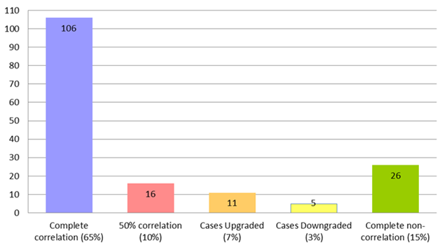 Initially, in each case, the degree of diagnostic agreement/disagreement between the ID and the SOD was classified into five categories as follows: