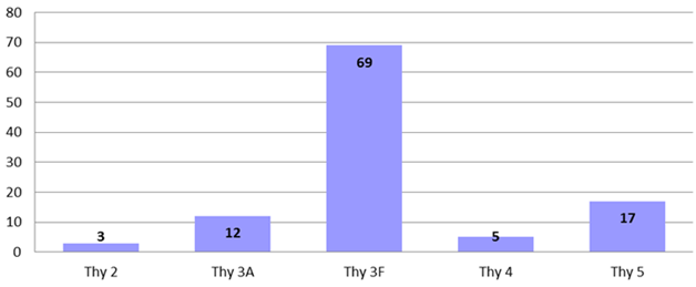 In the United Kingdom (UK), thyroid cytology reporting system is based on the British Thyroid Association (BTA)/Royal Collage of Pathologists (RCPath) Thy terminology. This classification includes Thy1 (non-diagnostic), Thy2 (benign), Thy3a (cytological/architectural atypia), Thy3f (suggestive of a follicular neoplasm), Thy4 (suspicious of malignancy) and Thy5 (malignant). This system allows consistent and reproducible reporting of thyroid cytology specimens, and provides a basis for clear communication on which the management of patients with abnormal FNAs can be based.1,2