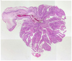 Viral duplication of the human papilloma virus appears in heterogeneous epithelial cells and the extrinsic epithelial lamina may be discarded in order to dispense with the viral particles. The antigenic stimulus is usually contained and so is the immune modulation and susceptibility to viral infection. Hence the Human Papilloma Virus (HPV) is interminably contagious and difficult to eradicate.3,6 Lesions may persist up-to 20years following infection, in the absence of significant metamorphosis. The virus may practically inhabit all the lesions, as evidenced on histopathology by the occurrence of koilocyte like cells in the spinous epithelial substratum.1,9 Basilar hyperplasia is infrequent and when accompanied with mitosis, it may be misinterpreted as mild epithelial dysplasia. However, the benign oral squamous papilloma may occasionally display atypical cells and mitosis. The characteristics may be suspicious of a Papillary Carcinoma. The compact, cornified, stratified epithelium illustrates a whitish chromaticity. The HPV–DNA in the host epithelium may be identified by a Polymerase chain reaction (PCR) and in situ hybridization (ISH) techniques, utilizing radioisotope labelled specific probes.1 The polymerase chain reaction (PCR) is an appropriate and innovative technique for the viral (HPV) delineation, in contrast to the in situ hybridization (ISH). The low-grade oncogenic variants of the human papilloma virus, HPV 6 and 11 are implicated in the genesis of Papillomas.6,10