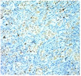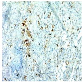 Weiss & Mentzel in their study of 46 and 24cases reported hemangioendothelioma in deep soft tissues. In our study we had only 2cases seen in Chest and Abdomen and lower limb region. Immunohistochemistry showed positivity for CD34 in our study. Fibrosarcoma comprise 5-10% of sarcomas according to Markhede G et al.24 In the study 7cases of fibro sarcomas were noted constituted an incidence of 24.1% of all soft tissue sarcomas. In a review of 695cases at AFIP 1970-79, 10% in head and neck, 17% trunk, 28% in upper extremities & 45% in lower extremities. Bizer LS 1971 noted a site distribution of 7.8% in head and neck, 51% in trunk, 17% in upper extremities & 23% in lower extremities.25 Hidayat AA26,27 and Enzinger FM & SW Weiss reported site distribution of 85-90% in extremities in which 50-60% was in lower extremity, 10-15% occurred in head and neck and trunk region. In our study most common site was Chest and Abdomen (trunk) followed by Pelvis and Retroperitoneal region. The incidence of liposarcoma reported by Costa J et al.18 was 10-25% among soft tissue sarcoma. In the present study 3cases were seen with an incidence 10.3% with male preponderance. Similar findings were found in studies done by AFIP, Reszel and Spittle Stout AP & Lattles R and Kindblomtt et al.15 reported a male preponderance. In present study all the cases showed positivity for S-100 (Figure 2).