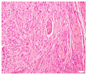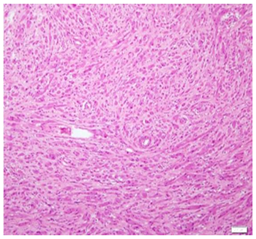 Figure 3 Cells were arranged in intersecting bundles and mixed with fibrous connective tissue.