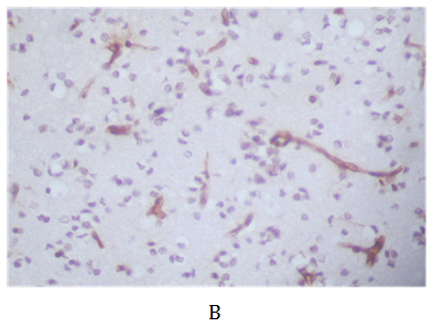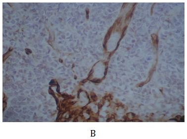 No Nestin immunostaining was seen in any of the oligodendroglioma tumor cells, but Nestin stained the endothelial cells in oligodendroglioma as a positive internal control (Figure 1,2).