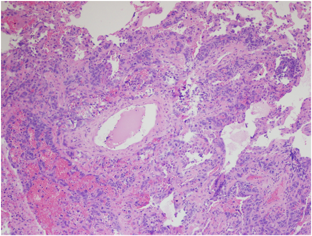 Figure 2B Right lower lobe wedge resection. H&E, 400x