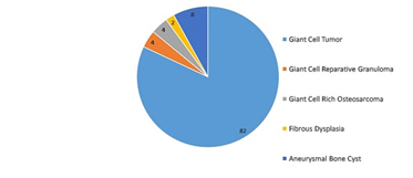 Figure 1 graphical distribution of giant cell lesions with different proportions of giant cell tumors among them.
