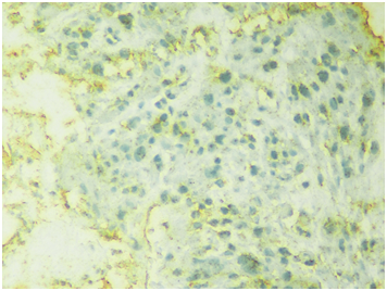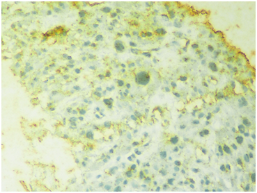 Figure 6Immunohistochemistry, of Pancytokeratin (AE1/AE3) is Negative (400X).
