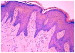 Chronic candidiasis: Prominent hyperkeratosis, pseudo-epitheliomatous hyperplasia, compressed orthokeratosis and a scaly encrustation may appear.5,6 Fungal spores and hyphae may be delineated in the absence of a Periodic acid Schiff (PAS) stain. Granulomatous dermatitis may also emerge with indeterminate granulomas comprising of lymphocytes, plasma cells, epitheloid cells and sporadic giant cells.5,6