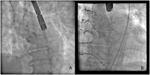 Until this moment, the TAVR devices approved and non-approved are described in (Table 1), and some TAVR devices have their fluoroscopic view demonstrated in (Figure 2). There was a recent report about Lotus valves recall due to pin troubles, following reports of problems with the device’s locking mechanism. The problem, according to the company, is the premature release of a pin connecting the Lotus valve to the device’s delivery system. Boston Scientific expects to reintroduce the Lotus to Europe and other regions in the fourth quarter of this year (2017).20 The most patients considered for TAVR undergo multimodal imaging assessment of the aortic root. The multislice computed tomography and/or three-dimensional echocardiography are the imaging modalities of choice (according to availability and local expertise) to evaluate the annular dimensions (diameters, area, perimeter) and unique anatomical features of each patient. A variety of adverse anatomical features may complicate TAVR procedure, and in such cases the availability of multiple TAVR technologies can facilitate the procedure safety.21