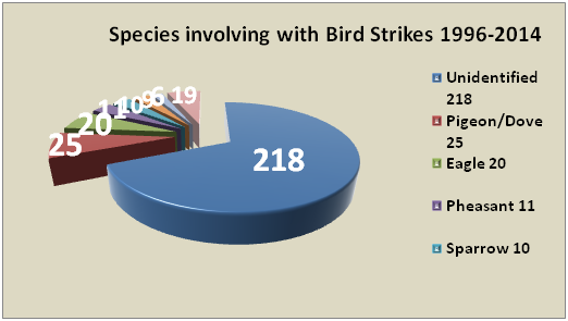 Fortunately, bird strikes have never resulted in casualties in Iran, but the material damage may exceed millions of dollars per year. To minimise the bird strike risk, several actions should be taken. As a first start, speed up the establishment of the National Bird Strike Committee. Since, the Department of Environment will be a member of the mentioned committee, this will help set up a bird remains identification scheme for the strike cases. Furthermore, in order to get as close as possible to the highest international flight safety standards, the Department of Environment will suggest the CAO Iran to establish bird control units, at the airports with most bird strikes.