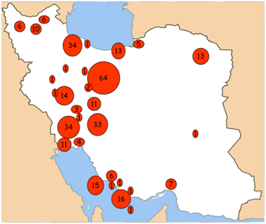 The total number of bird strikes at each airport doesn’t only reflect the number of birds crossing the flight path of the aircraft, but also the number of aircraft movements. Unfortunately, there were hardly water birds among the bird strikes recorded by CAO Iran in the past ten years. For this reason, we could not compare the number of water birds in the sites close to the airports, nor could we calculate the potential risk of water birds to aircraft landing and departing from those airports (Figure 6).