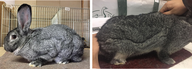 The exterior deficiencies typically observed in most evaluated medium breeds involved less dense and elastic coat. Especially in BLS (19.8%) and in the group of Vienna breeds (16.8%), the coat was uneven and less elastic. In 7.1% of BLS and in 9.6% of ChG breed, uneven and less elastic coat was observed, particularly in young individuals. Longer or inflexible coat was a typical defect in Vienna whites. In the small group of Vienna rabbits and ChG, the coat was longer, softer and completely non-elastic with more pronounced hairs (Figure 3 & 4). On the other hand, many of BLS (21.1%), ChG (17.6%) and VB (14.7%) rabbits had a very good texture and density of the coat (Table 3).