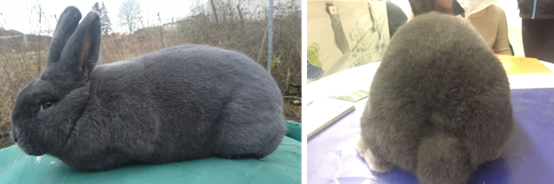 Position - Coat. Zhang et al.7 & Simek8 stated that five basic coat parameters are evaluated for all breeds of rabbits as part of the show requirements. These are length, balance, density, elasticity and texture. Some individuals at the time of the show were not in optimum show fitness (moulting), which negatively affected the characteristics and structure of their coat. In such individuals, the hair was often softer and less elastic in the moult, in rare cases unevenly overgrown areas of the buttocks or abdomen were visible (Figure 2). In rabbits in ideal show condition the coat had very good density and flexibility (Table 3).
