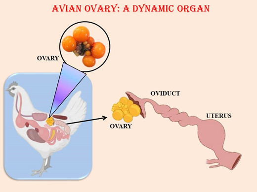 The ovary is a vital part of reproductive system in female birds. It’s a unique organ because of its other varied distinctive adaptations from mammalian ovary. It retains single left ovary and oviduct as functional while the right one is usually rudimentary or absent. The reduced right ovary is probably related to necessity of lightweight body structure for bird’s flight. However, “the why” for presence of single ovary is just presumed with examples of some other avian species and still not considerably backed scientifically. For instance, in some other avian species like kiwis (Apteryx), both ovaries are developed, but only the left oviduct is functional as these are flightless ratite birds of New Zealand that evolved from volant predecessors.1 In ovaries of many avian species especially in migratory birds, seasonal variations are observed in which the size and activity of the ovary can change with the changing seasons.