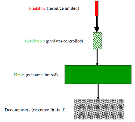 Figure 1 Hairston, Smith, et al.5 (HSS) the trophic control hypothesis (usually referred to as ‘the green world hypothesis’).