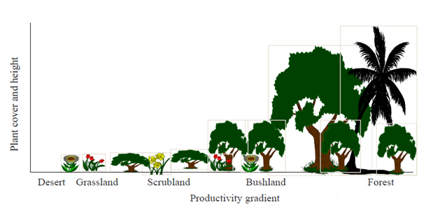Keywords: biomass distribution, cascades, community ecology, ecological organizations, functionally diversified, holistic approach, primary productivity, productivity gradients, structural components, terrestrial communities