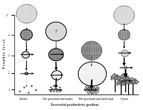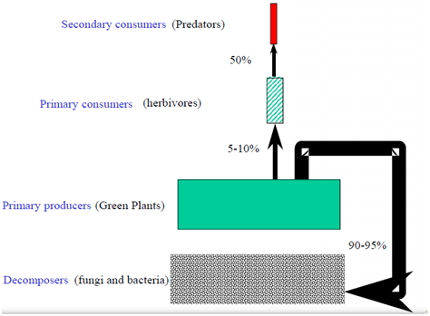 Figure 5 The energetic transfer efficiencies along the different tropic levels in the terrestrial communities adapted from.29