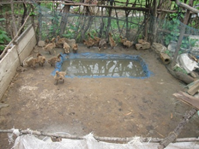 Methods of polythene pond preparation: A Rectangular pit (6ft x 4ft x 2ft) was made by removing soil in the ground. The pit was completely mulched/lined with good quality thick single polythene sheet (12ft X 8ft) without any joint or overlapping. The outer edge of the polythene sheet was fixed at the outer margin of the pit with keels or nails so that the polythene sheet remained intact with the soil. Pits were filled with water from well/tube well or from any other water source. The water in the polythene pond was always filled to the brim by adding it from time to time. Further, the total water was changed when it was dirty and unhygienic (Figure 1).