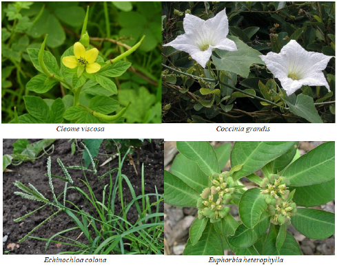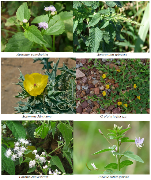 Some of the plants introduced by human beings, agencies either as ornamentals, fruits, vegetable sources or merely as the curiosities. Barren and grassy land show the occurrence of Justicia adathoda, Calotropis procera, Agave americana, Euphorbia tirucali, Nerium pulchellum, Argemone mexicana, Lantana camara, Gymnosporia montana, Ricinus communis, etc. grasses are found in abundance, particularly during rainy season. The list of plant species recorded during primary survey listed in Table 1 &Figure 1.