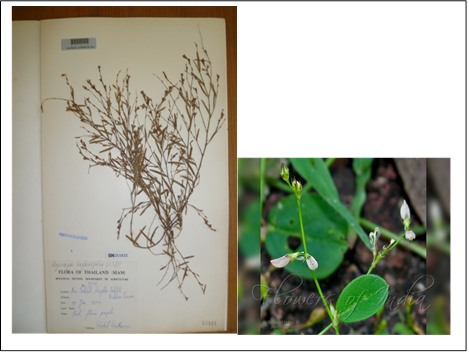 A. bupleurifolius (Hedysarum bupleurifolium L.) that is commonly known as Sweet Alyce Clover is a native to India. It’s a perennial herb that has a 1-2 ft tall stem with a line of hairs. It’s fairly smooth unifoliate leaves with a length ranging between 8 mm-6 cm and breadth (3-8 mm) are carried on long stalks. The inflorescence is a lax raceme, with red flowers in distant pairs. Flower stalks are almost 2 mm long and sepal cup is 6-7 mm long. Flowering time is September and October every year (Figure 3). This is a palatable species which is readily eaten by horses and cattle and it responds strongly to fertilizer. The species is also used for medicinal purposes or as fodder.4